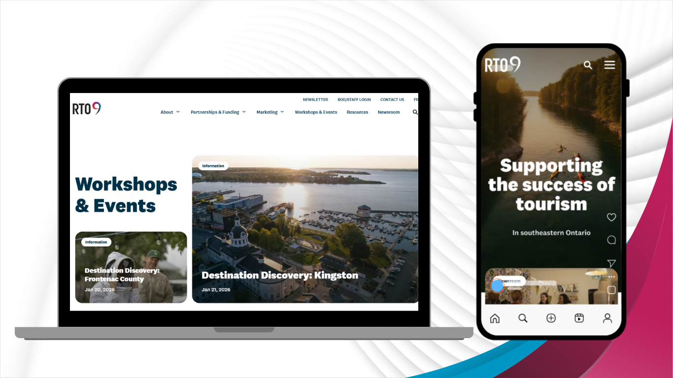 On December 10, RTO 9 relaunched this industry website, developed in partnership with our agency of record, Alphabet Creative. The updated site features a modern design, improved navigation, and full responsiveness across devices, serving as a one-stop hub for tourism operators across South Eastern Ontario. It makes it easier to access funding opportunities, register for workshops and events, and discover resources to support business growth.